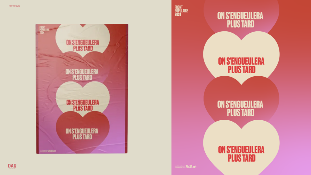Dans l’urgence, j’ai rejoint le collectif 24×36.art, un groupe de graphistes mobilisé·es pour produire des visuels en soutien au Nouveau Front Populaire.